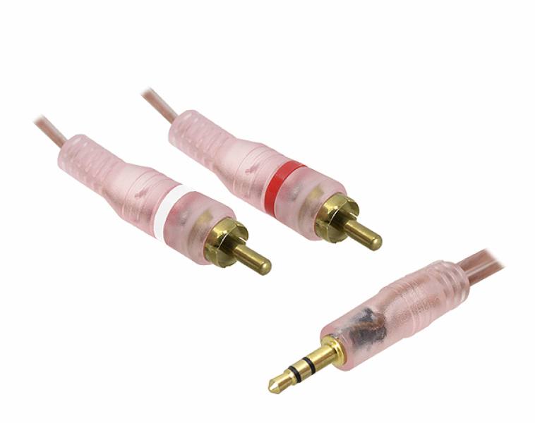 Câble PS Jack 3,5 – 2 prises RCA, transparent, HQ, 3 m.