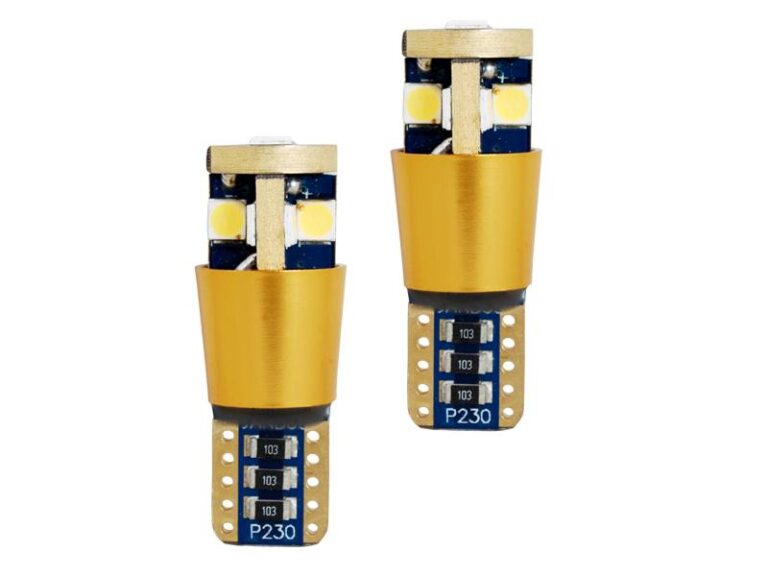 Ampoule LED CANBUS T10 10×2835 12V, lumière blanche froide.