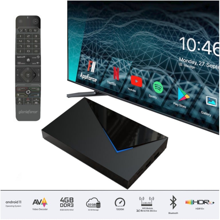 Gloriaforce RTX empire 4K UHD IPTV Player Android 11 H.265 2Go RAM 16Go rom