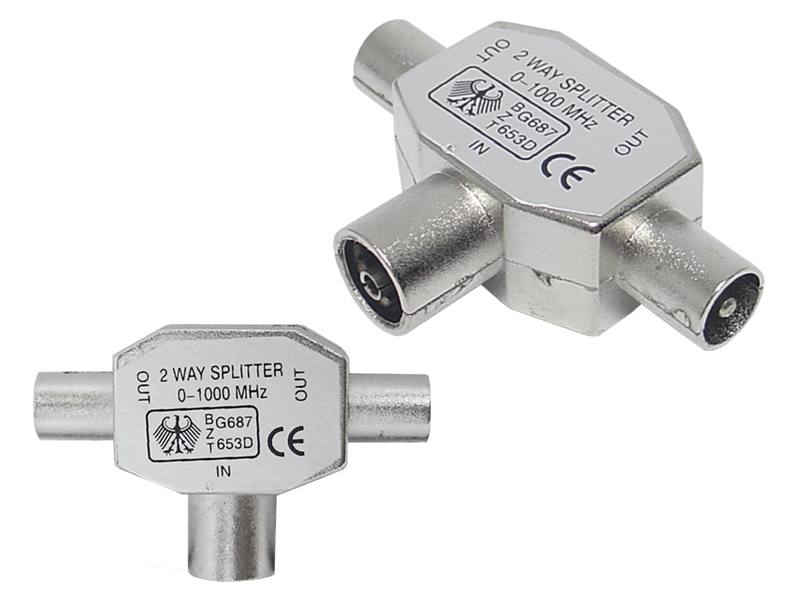 Adaptateur en T – Prise TV – 2 fiches TV, métal