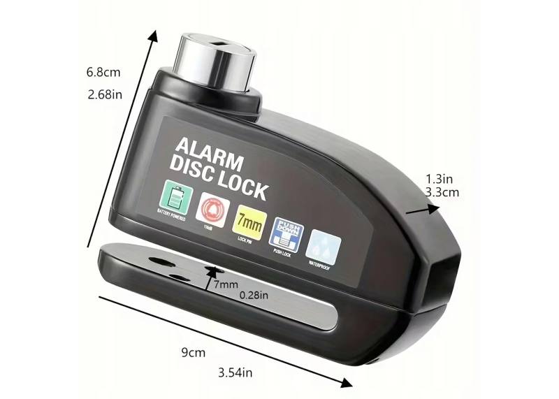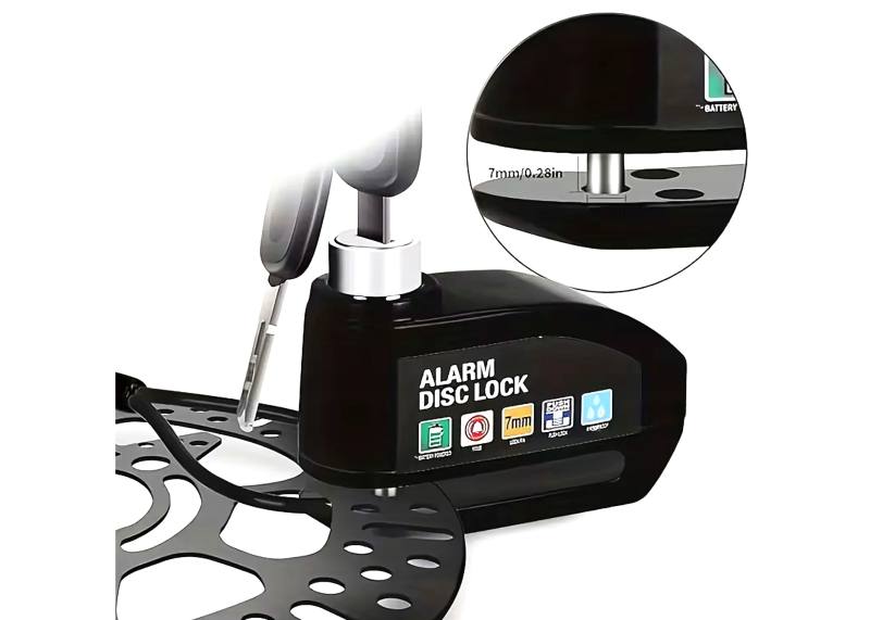 Antivol de disque de frein avec alarme 110 dB 7 mm, pour scooter, vélo, cyclomoteur, quad