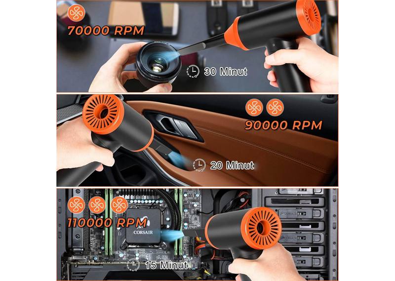 ASPIRATEUR/SOUFFLEUR PORTABLE SANS FIL VOITURE/MAISON 90W USB-C 2 en 1 LTC