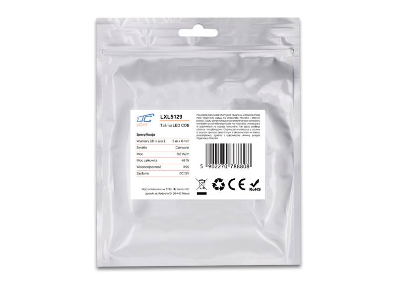 Bande LED PS COB rouge IP20 48 W 9,6 W/m, rouleau de 5 m, 12 V