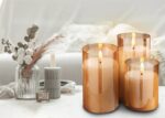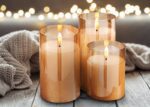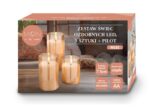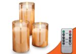 Bougies décoratives LED, en verre, dorées, lot de 3 + télécommande