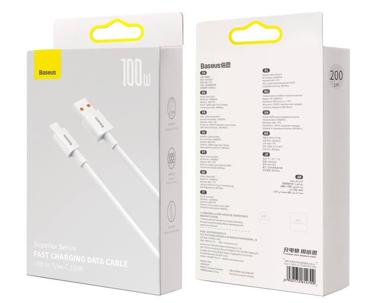 Câble Baseus Superior USB-USB-C 2 m 66 W Blanc