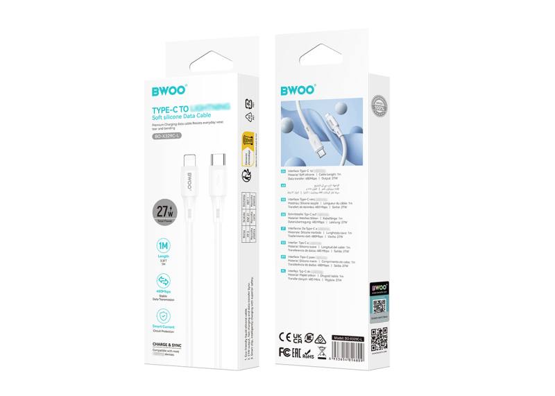 Câble en silicone BWOO USB-C Lightning 1 m 27 W blanc