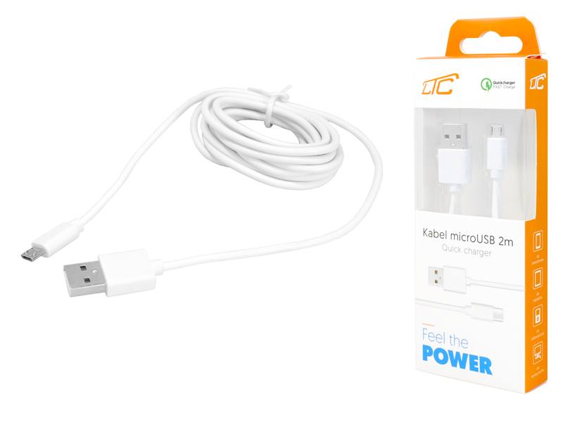 Câble PS MicroUSB 1 m, blanc, charge rapide.