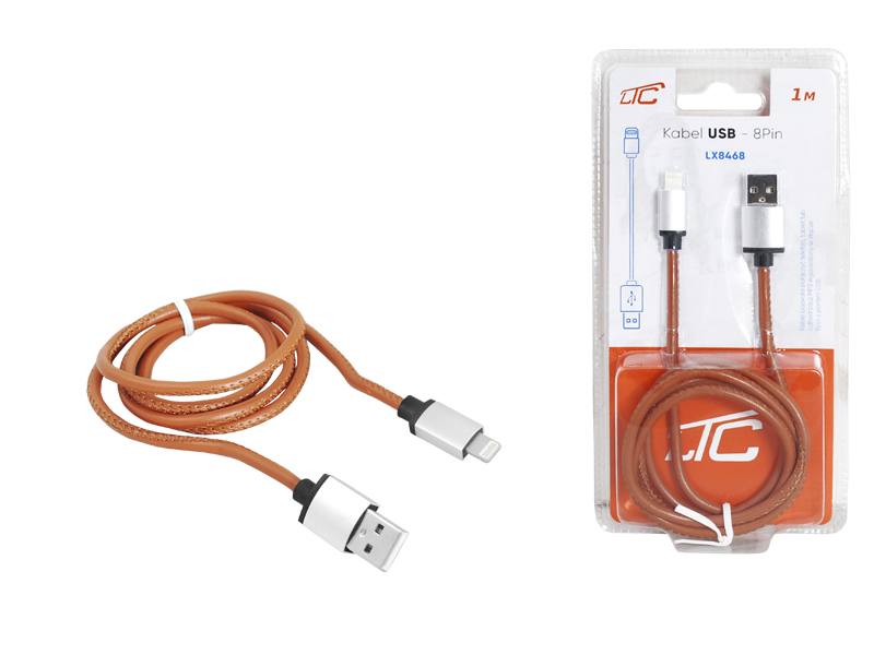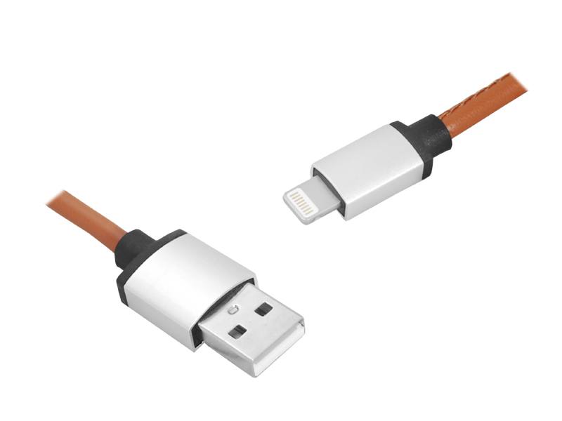 Câble PS USB-IPHONE 8 broches 1 m en cuir marron