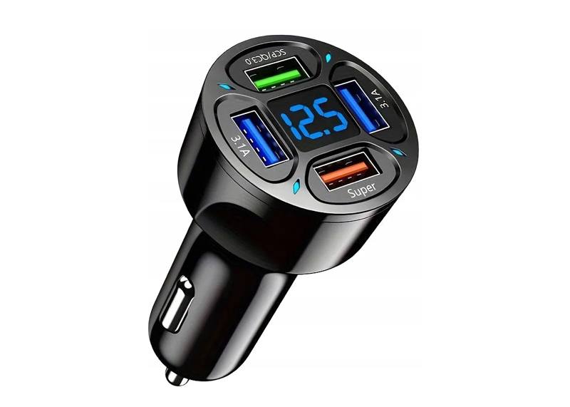 Chargeur de voiture LED, chargeur rapide 4 ports USB, 3,1 A, 60 W
