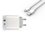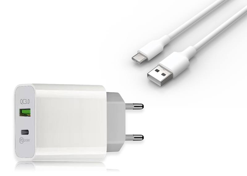 Chargeur mural PD + QC 3A + câble USB-C 1 m, PD 20 W 3000 mA