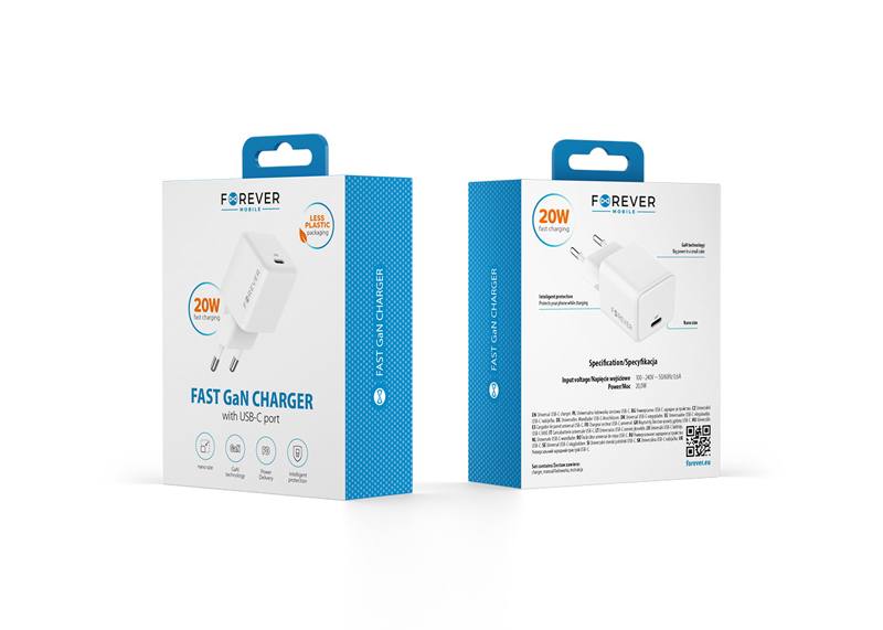 Chargeur secteur FOREVER 20 W GaN PD QC USB-C blanc TC-08-20C