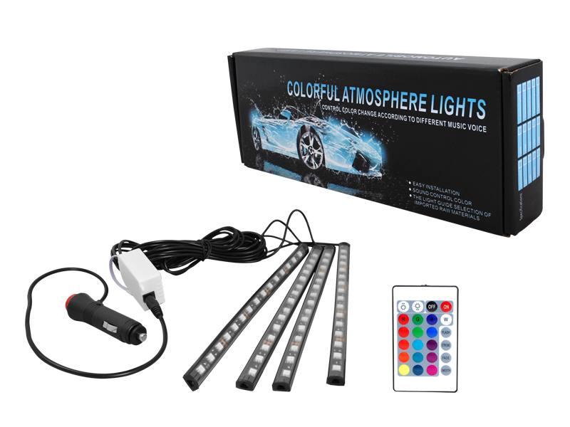 Éclairage intérieur/d’habitacle de voiture, 4 bandes RGB 15 LED étanches + contrôleur/télécommande/prise allume-cigare, IP54.