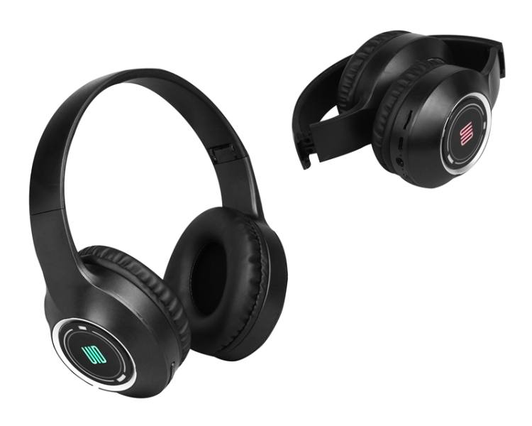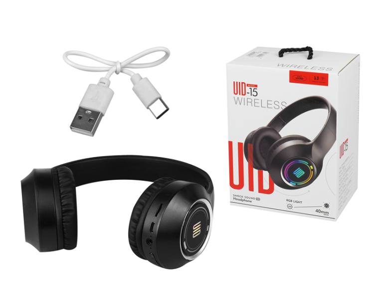 Écouteurs Bluetooth avec rétroéclairage RGB UID-15, entrée auxiliaire, batterie 300 mA, noir