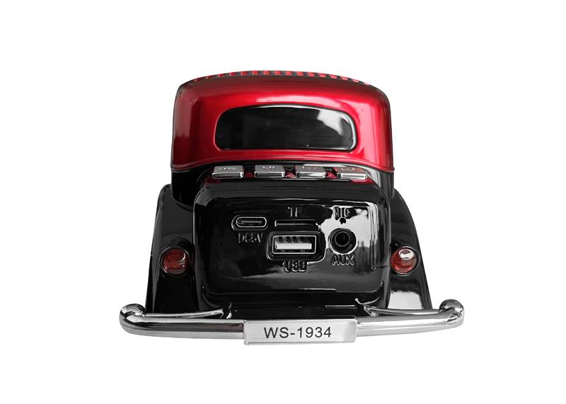 Enceinte Bluetooth rétro WS-1934, 10 W, radio FM, USB, carte TF, écran LED, batterie 1500 mAh, rouge et noir
