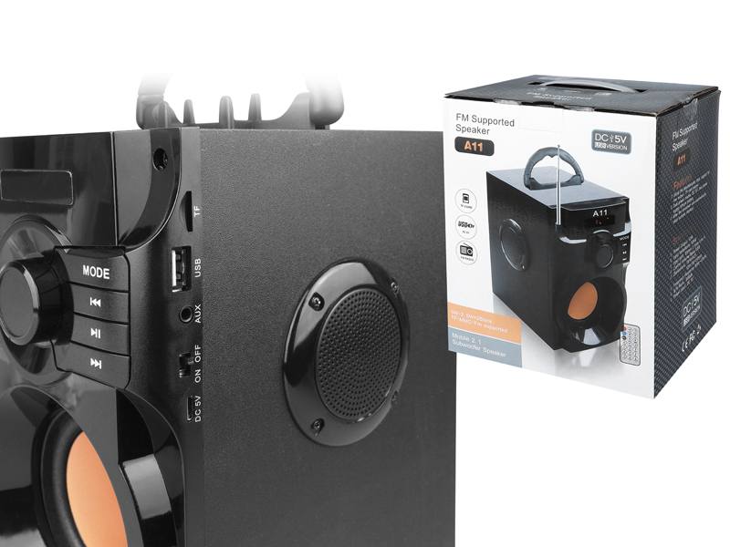 Enceinte rétro A11, 10 W, Bluetooth, radio FM, USB, Micro SD, AUX, télécommande, batterie intégrée.