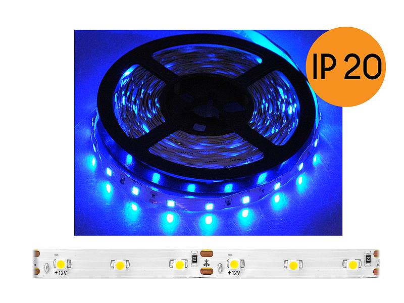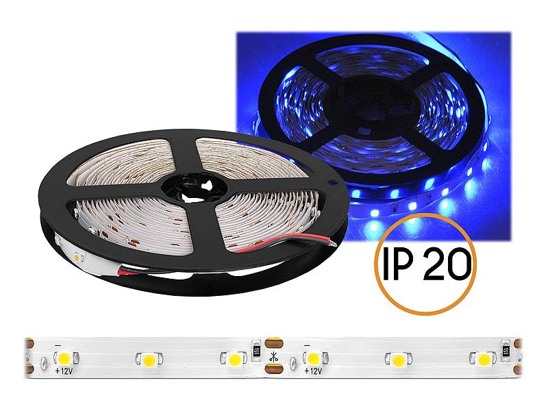 Guirlande de diodes PS ECO IP20, bleue, 300 diodes SMD2835, 5 m, base blanche.