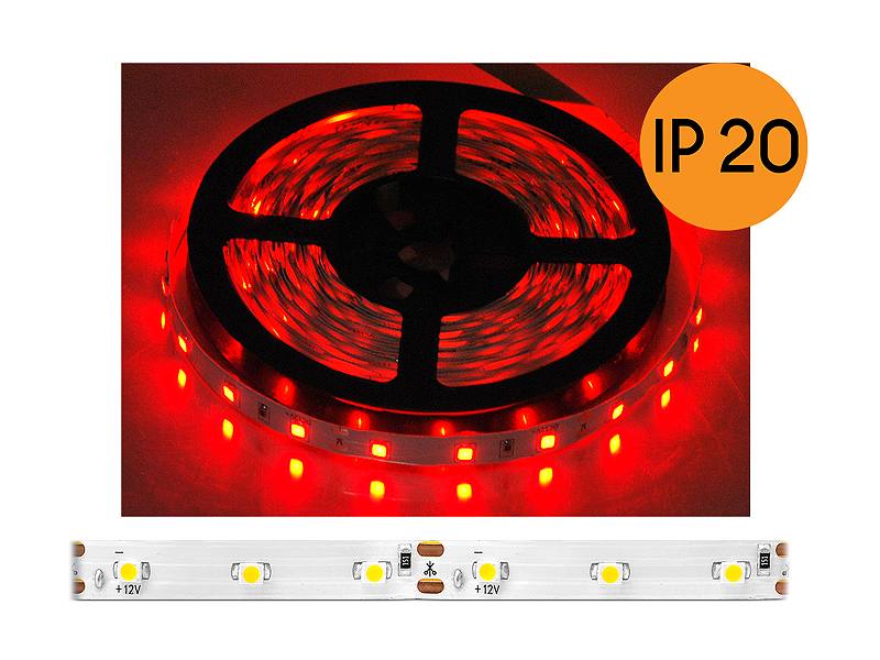 Guirlande de diodes PS ECO IP20, rouge, 300 diodes SMD2835, 5 m, base blanche.