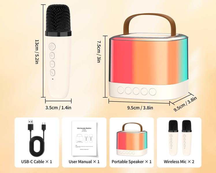 Kit karaoké U16 5W avec deux microphones, RGB, USB, carte TF et Bluetooth