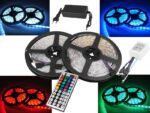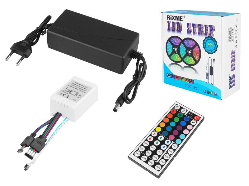Kit PS : Guirlande LED. RGB+W IP65 300 diodes SMD5050 10 m + contrôleur + alimentation, télécommande 44 boutons.