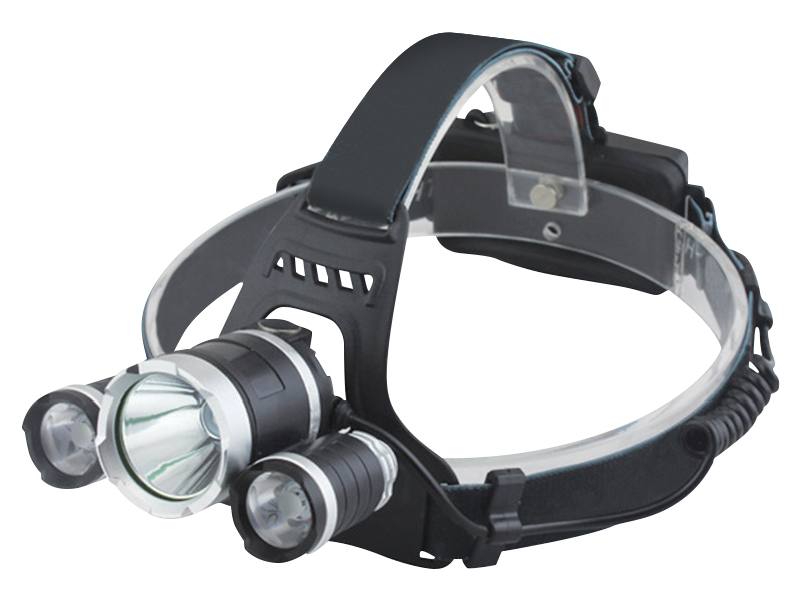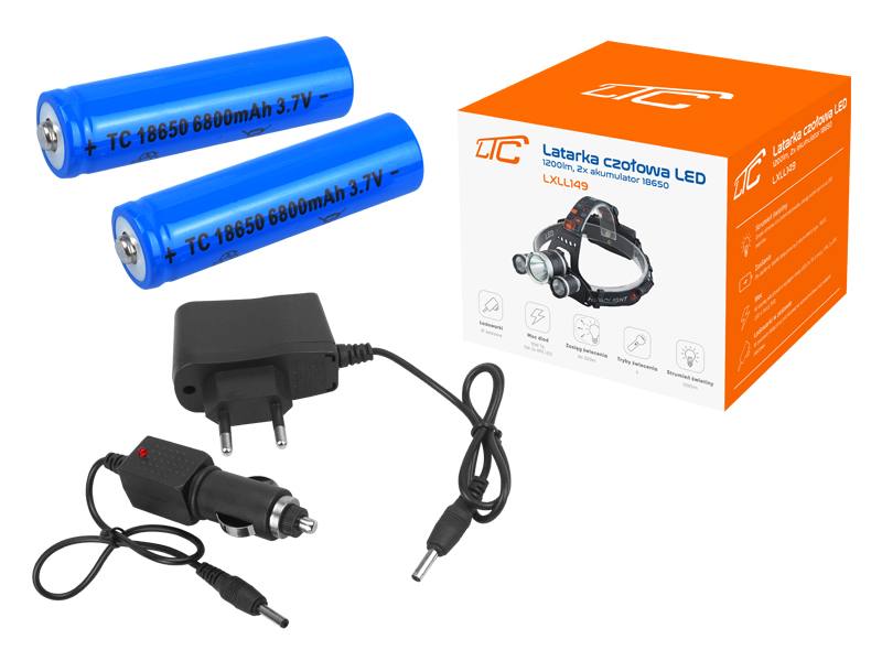 Lampe frontale LTC 3-LED T6 1200lm, 2 batteries 18650, chargeur secteur, chargeur voiture, réglage en 4 étapes.