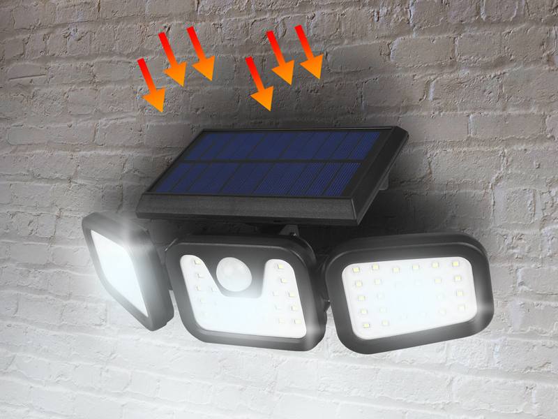 Lampe solaire LTC 74 LED SMD 20 W, angle de faisceau réglable avec capteur de mouvement et de luminosité, batterie 2400 mAh