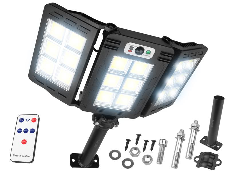 Lampe solaire W786-6 18xCOB, détecteur de mouvement et de luminosité, télécommande, réglable