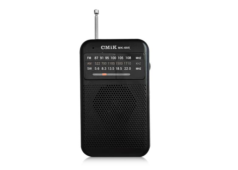 Mini radio de poche portable MK-605, AM/FM/AUX, noire