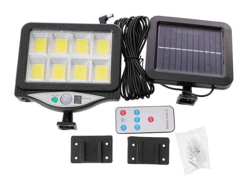 Projecteur LED LTC avec panneau solaire 8W, 8xCOB, 100lm, détecteur de mouvement, détecteur crépusculaire, télécommande et batterie 1200mAh