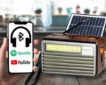 Radio portable rétro PS Liwa avec panneaux solaires (MK-193BT), FM, Bluetooth, USB, SD, AUX, lampe USB, grise