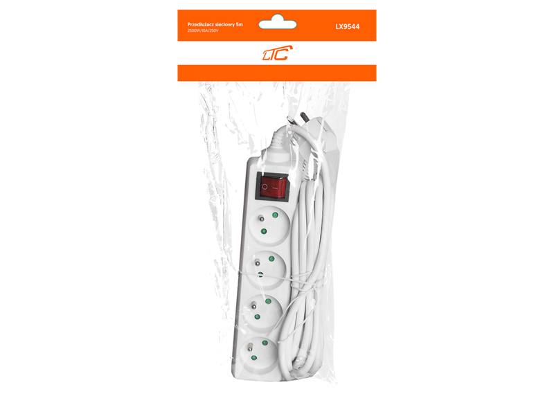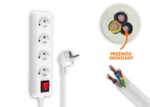 Rallonge électrique, 4 prises avec mise à la terre et interrupteur, 5 m, blanche