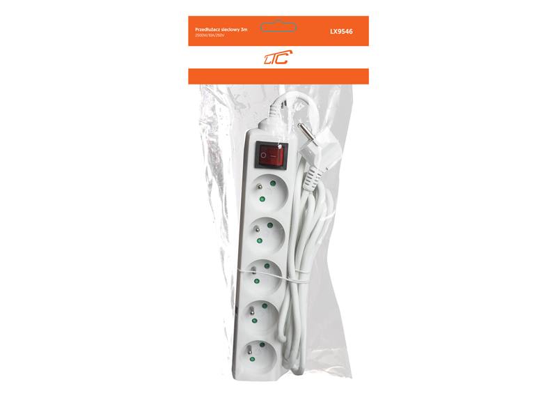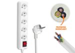 Rallonge électrique, 5 prises avec mise à la terre et interrupteur, 3 m, blanche
