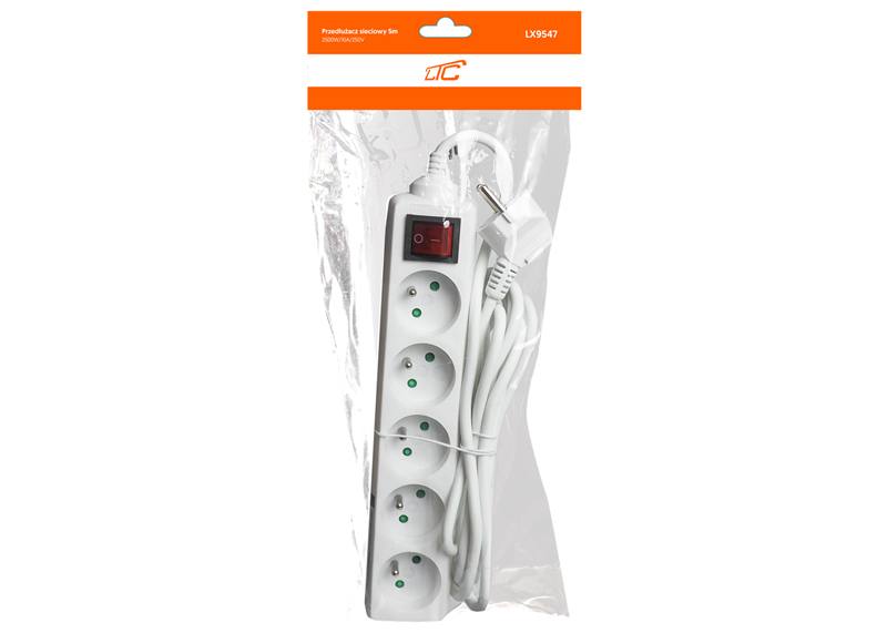 Rallonge électrique, 5 prises avec mise à la terre et interrupteur, 5 m, blanche