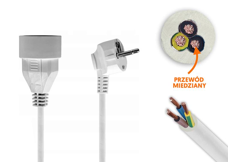Rallonge électrique blanche de 5 m avec prise et fiche