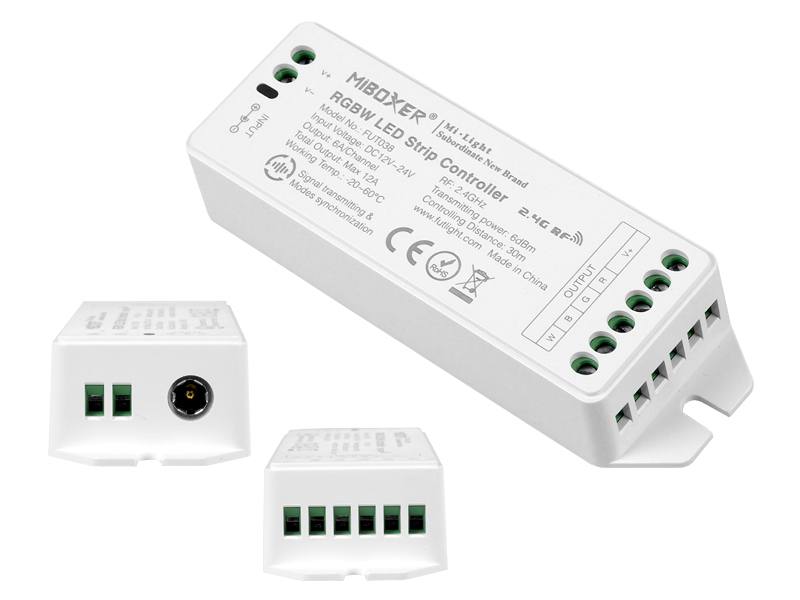 Récepteur Mi-Light RGBW, 2,4 GHz/WiFi, pour télécommandes 4 zones, fonction de gradation, max. 12 A, 1 canal max. 6 A.
