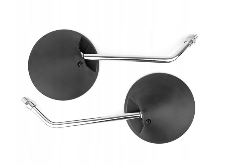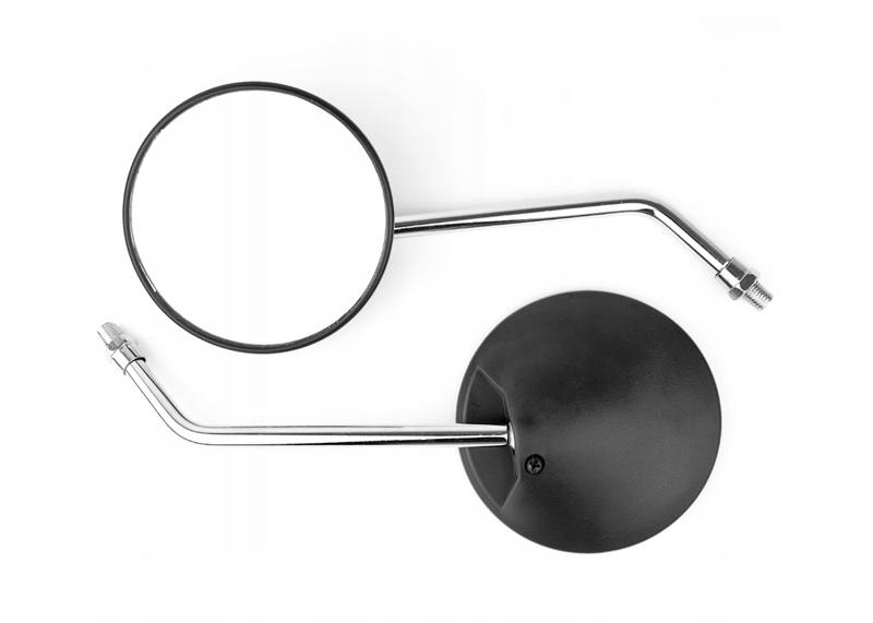 Rétroviseur pour moto, scooter, quad ; rond, noir, bras chromés, filetage M10 droit/droit, lot de 2.