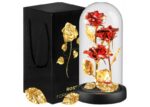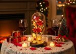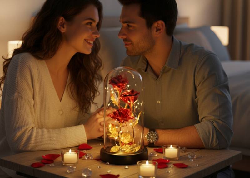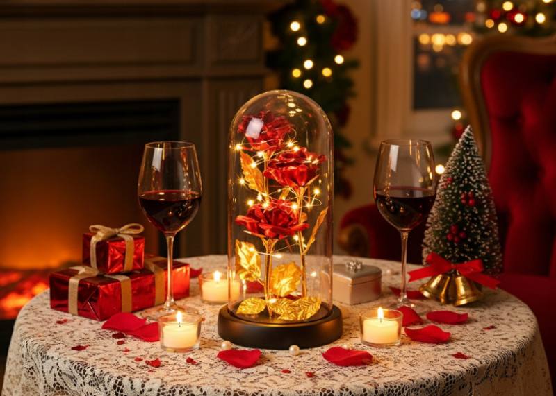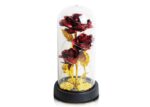 Rose décorative éternelle, rouge, trois fleurs rétroéclairées