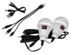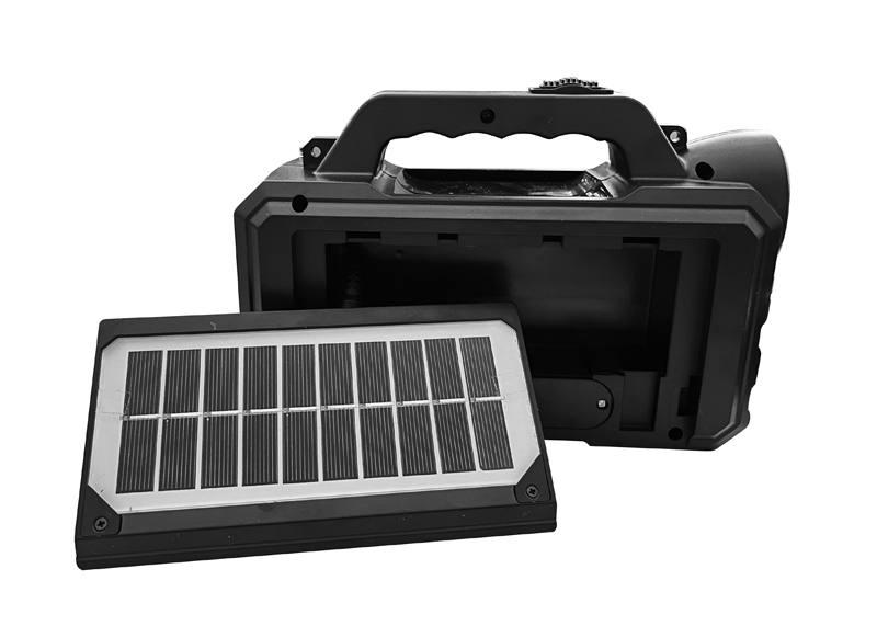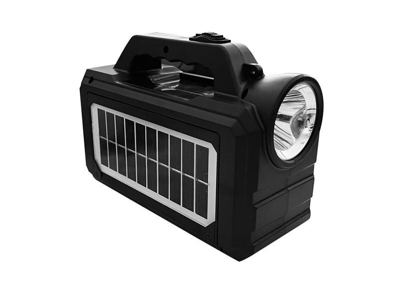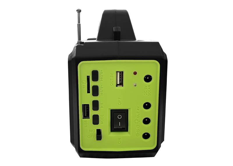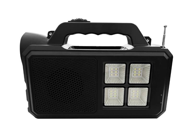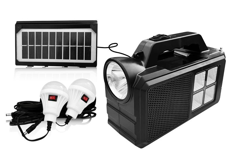 Système d’éclairage solaire PS VR-77FM, batterie externe, enceinte Bluetooth, radio, lecteur de carte TF, port USB, lampe torche LED + panneau latéral 24 LED, 2 ampoules LED avec câble de 2,8 m et interrupteur