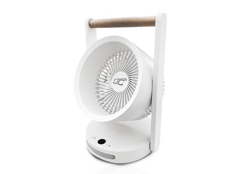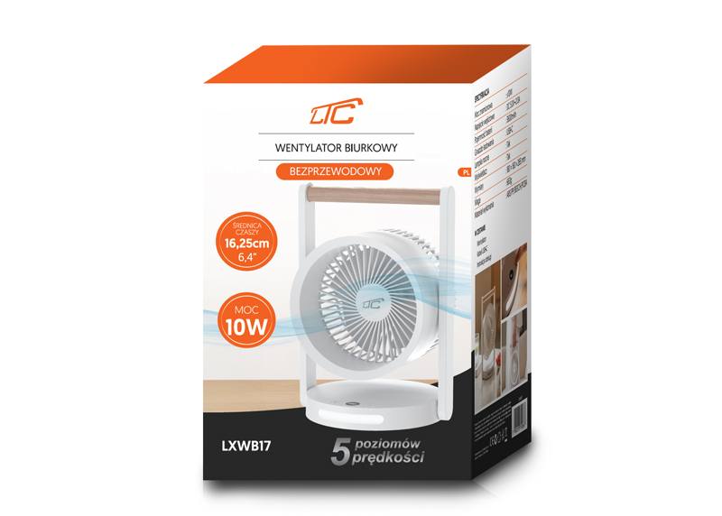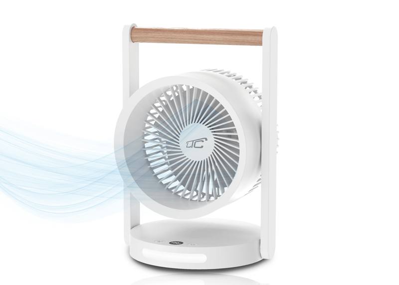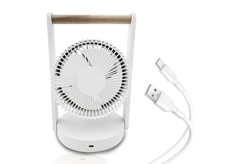 Ventilateur de bureau sans fil LTC avec poignée en bois, 16,3 cm (6,4 pouces), USB-C, 10 W, batterie 3 600 mAh, 5 vitesses et veilleuse.